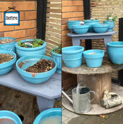 I did this all around the wrong way, hence the spray painting I'm leaving until next week's weekly 10. I have although cleaned up the pots that were there AND planted some new herbs and veges. Gold! Now to keep them alive...